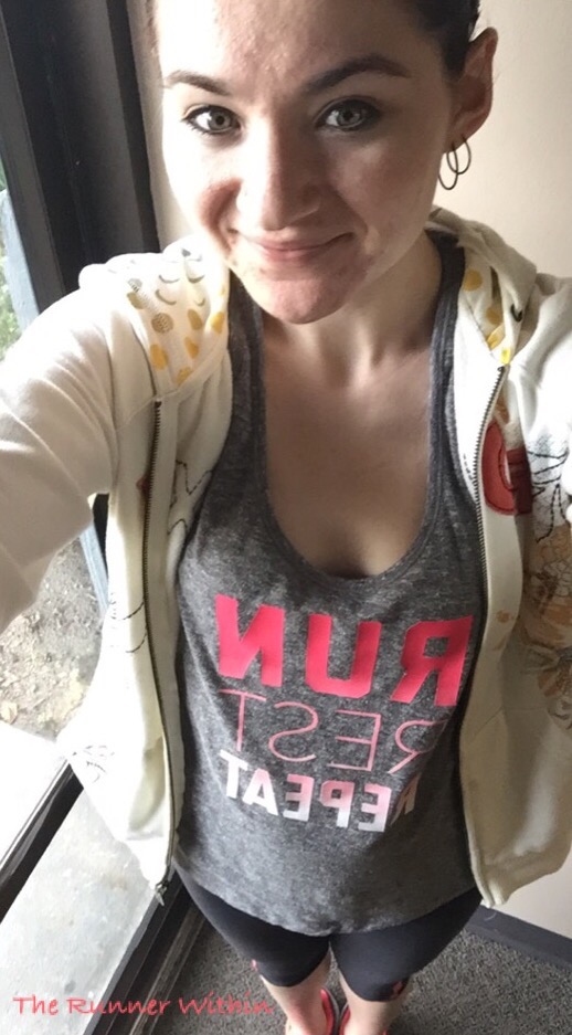 Friday: Rest day. What a rest day it was, my boss let us dress my casual/comfy this day. This gal doesn’t need to be told twice that she can wear her athletic wear clothes to work.