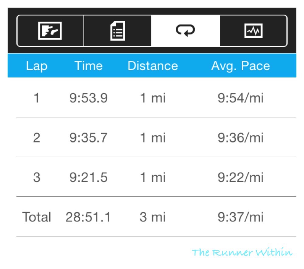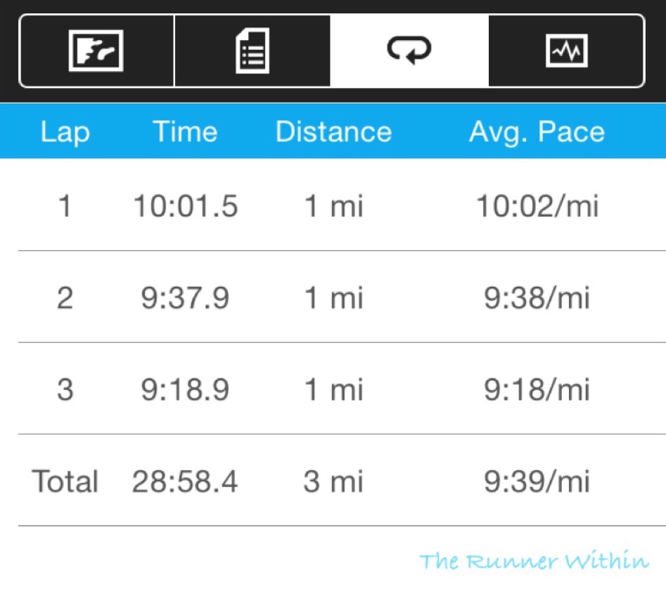 Tuesday: 3 mile run.