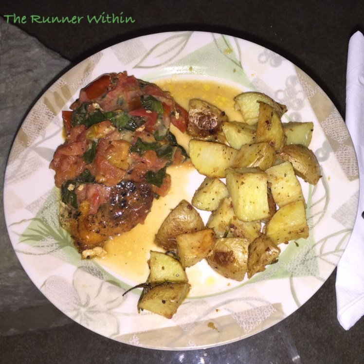 Friday night I made tomato basil chicken with roasted potatoes for dinner. I enjoy cooking, and this was a super easy and delicious dish to make. I knew I’d be dining out for the majority of my meals the next two days so I decided to stay in an cook dinner.