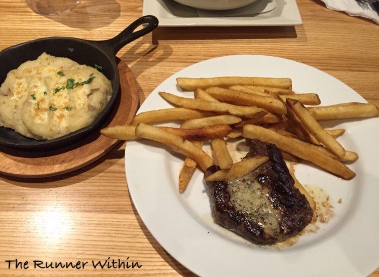 Having had steak and potatoes before my 12 miler as well as before the Best Damn Race Cape Coral half, I knew this was on the menu for dinner the night before. Montana needed to carb load with steak, rice and beans so we opted to go to Chili’s knowing they would have options to accommodate both of our needs.