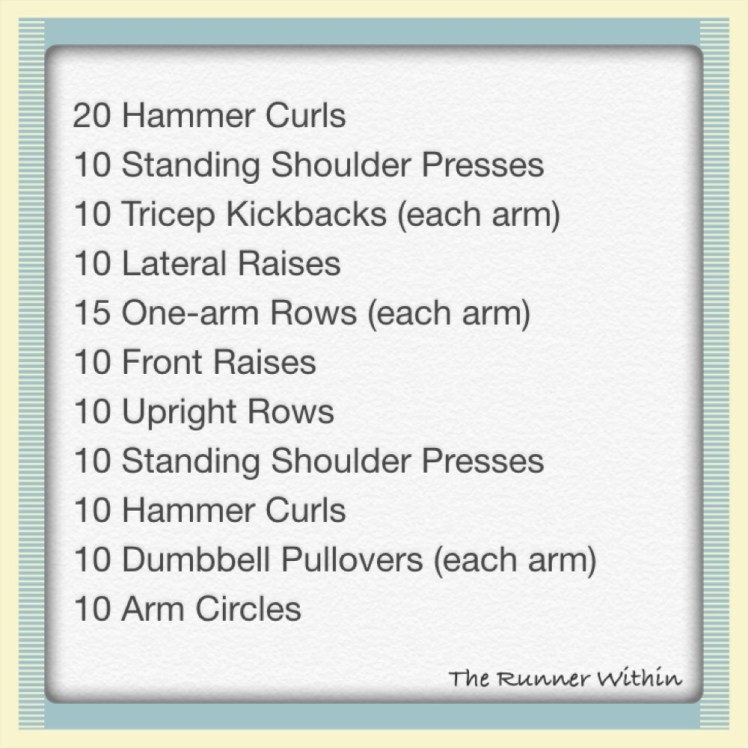 Thursday: 3.58 miles on the elliptical. I had hope to go out for a run but it was raining and then the treadmills at the gym in my apartment complex weren’t working so the elliptical it was.