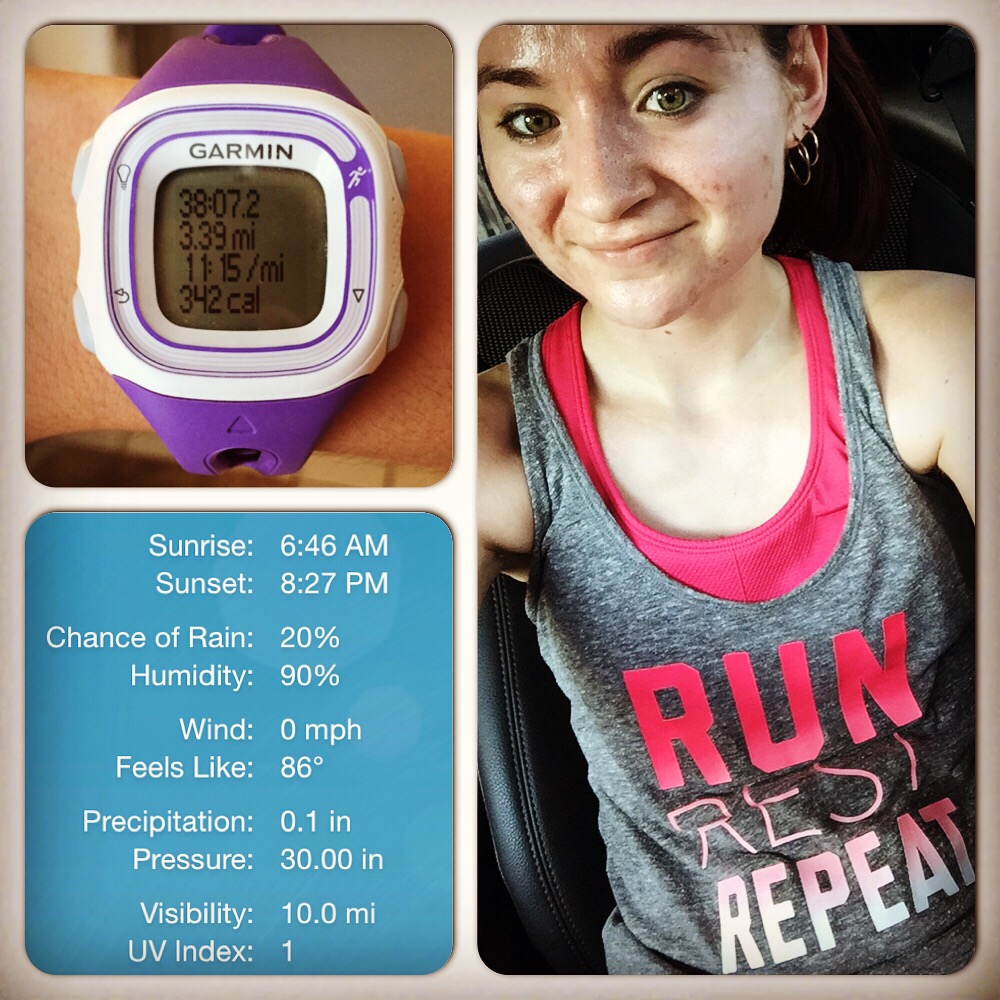 Sunday: 3.39 mile run then a .22 cool down walk with my friend Barbara.