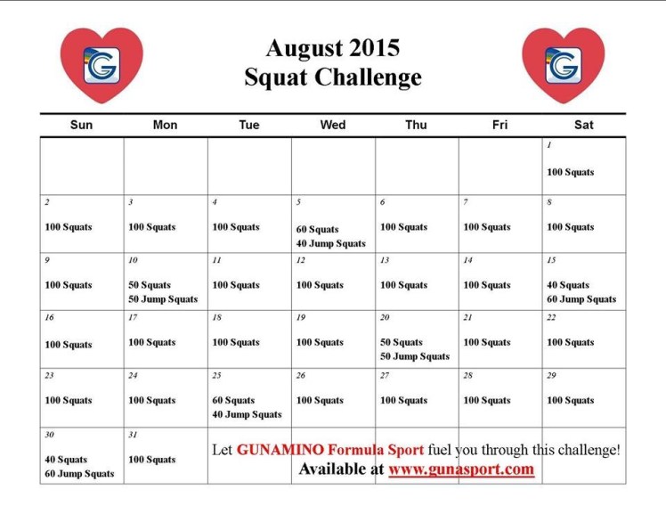 Looking to participate in a 30 day challenge? Join me in Guna, Inc. 30 day squat challenge for the month of August!