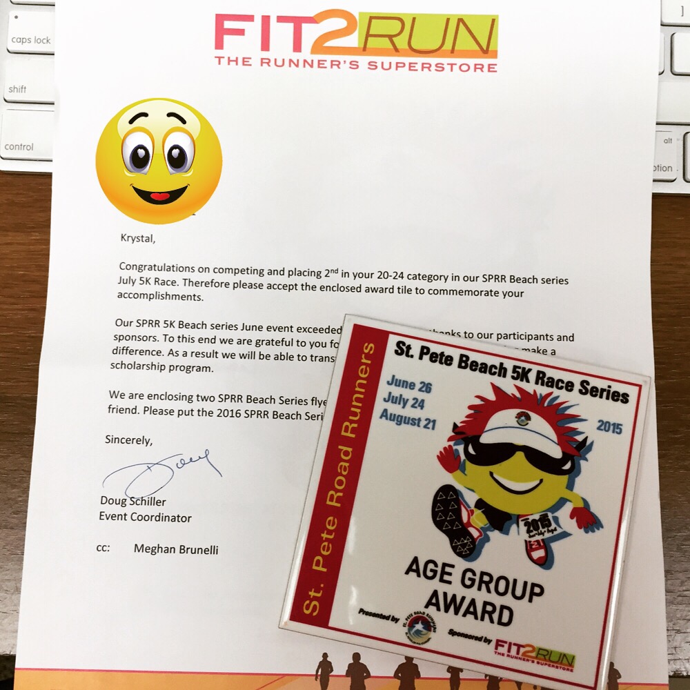 If you follow me on social media, you may have noticed my post last week on placing 2nd in my age group at my most recent 5k. I will admit it was quite a surprise, I actually had to look up the official result to confirm. My finish time was 34:59 and most of the girls in my age group typically finish in the 18-27 min time slot. Turns out there was only myself and one other girl who participated in the race from our age group, but regardless I placed and earned this awesome tile below!