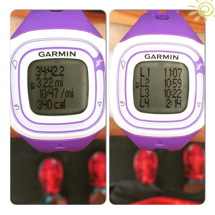 Saturday: 3.2 mile run with my friend Barbara, followed up with 100 squats for day 8.