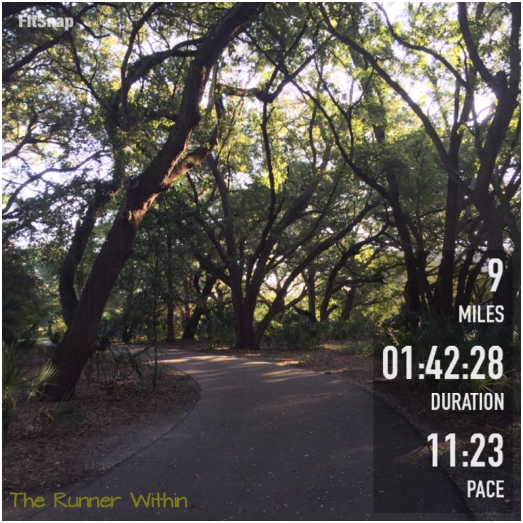 Having logged 8 miles the Sunday before and worked out or ran everyday during the week, come Friday though I was struggling to get up for class. Court had texted me throughout the night saying she was going to have to miss class for personal reason and knowing I was going to have to get my 9 miles in on Saturday instead of Sunday, I opted to take Friday off so I could give it my all for my long run. I still struggled a bit with my run but I kept my average pace under 11:30 and it wasn’t until the last few miles I had to go into run/walk intervals. This coming week is recovery week for running and next week is recovery week for camp. I’m looking forward to taking it a bit easier during the week so I can focus more on my long fun performance as I near the double digit runs.