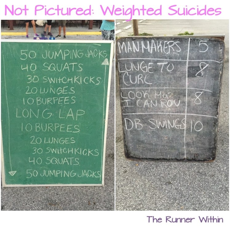 Monday: Boot camp. This week is MetCon week, the workouts are smaller reps with bigger bursts.