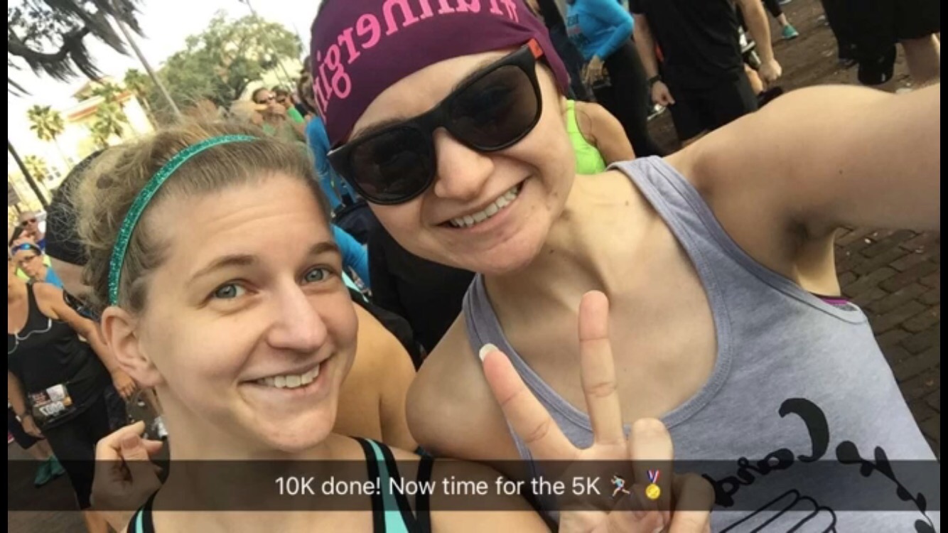 The 5K was just as crowded, and mostly likely more crowded than the 10K. Montana and I were able to make our way in deeper in the crowd, closer to the start line than we were able to for the 5K. Soon enough we were on our way! If there is one thing than annoys me more about the race is the number of walkers who start at the very beginning of the pack. I will be the last to judge you for walking a 5K, heck I walk with intervals when I am running. However when it comes to a race and there’s waves of runners who have to navigate around you, please be courteous and start a little more towards the back, it’s common race etiquette 🙂