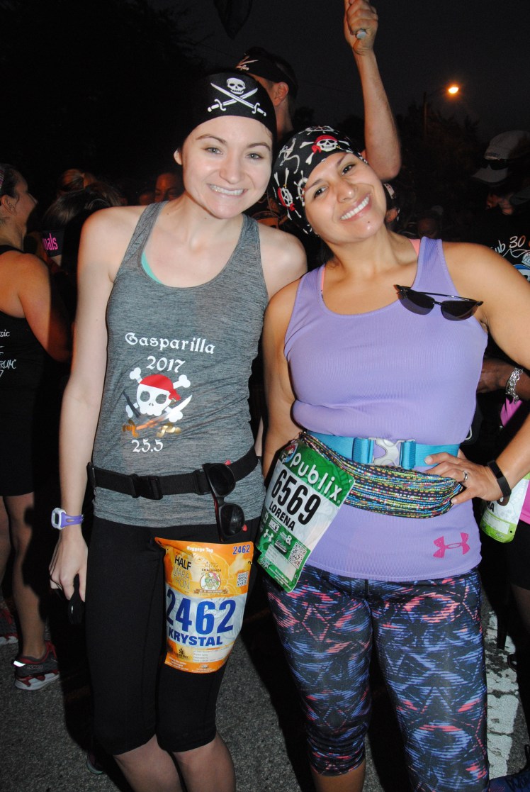 I took the day before Gasparilla off from work. I had some PTO to use up and I just wanted to relax a bit before the crazy 48 hours that laid ahead of me. Montana was driving up that morning to stay with me throughout the weekend. As soon as she got to my place we did a quick turn around back into the car and over to the expo. The last two times I ran Gasparilla I hadn’t had a chance to explore the expo, it comes in second compared to Disney in my opinion, so it was nice taking our time, walking up and down the aisles. Because Montana is actively involved in the running community not only with ambassador relations but she is also the store manager of Fit2Run, so it was quite funny because it felt like every 5 minutes throughout the entire weekend she saw someone she knew…in a nutshell I’d say she’s Helen from the movie Bridesmaids. With our time at the expo we checked out the cryotherapy booth and found our names on the walls of participants. I also met up with my friend Lorena from CG. She was running the 15K and 5K as well.
