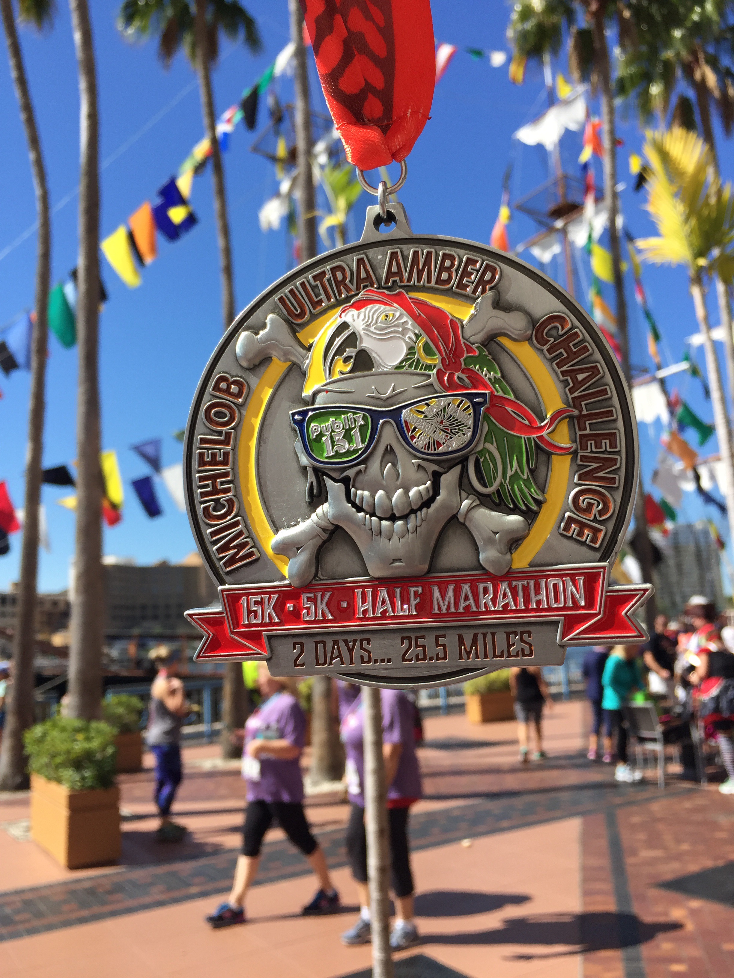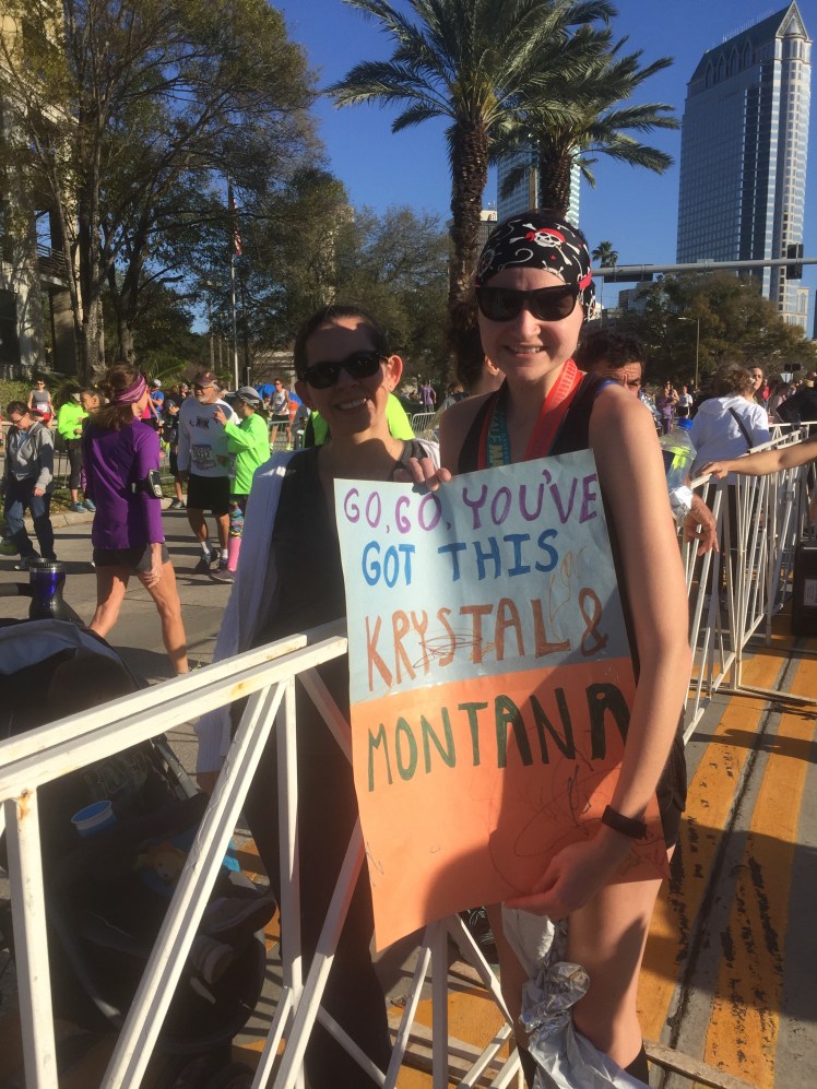 We came to our last walk interval right around mile 13. When the watch signaled for our run interval, I pushed the discomfort aside as we picked it back up. I kept my eye right on the finish sign, but not before spotting our friend Barbara standing off to the side with a big sign for us. As I shifted my focus ahead of me, I saw the 2:30 pacer cheering us on as we were ahead of the 2:30 mark. Montana crossed just seconds ahead of me. Official watch time – 2:26:32!! Not only did I crush goal A) which was to have fun and enjoy the miles and finish with a smile on my face. But I also accomplished goals B) and C) have fun, enjoy the miles and finish with a smile on my face and beat my previous time for this 15K event of 1:41:07 and beat my overall half marathon time of 2:28:08.