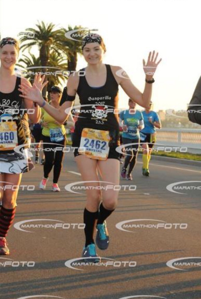 About mile 5 we were back on Bayshore and we could see the elites in the distance coming in for the finish. They make it look so easy, one girl was smiling – how? Our pace was maintaining consistency until about mile 6 we took it up a notch slightly and Montana reeled us back in. She reminded me again that if I was feeling it to go ahead but I wanted us to finish together first and foremost over a PR. As we passed made our way on the out loop on Bayshore I was keeping my eye out for my trainer and a former co-worker who was running this race, let me tell you looking for a familiar face really helped the couple of miles go by even quicker.