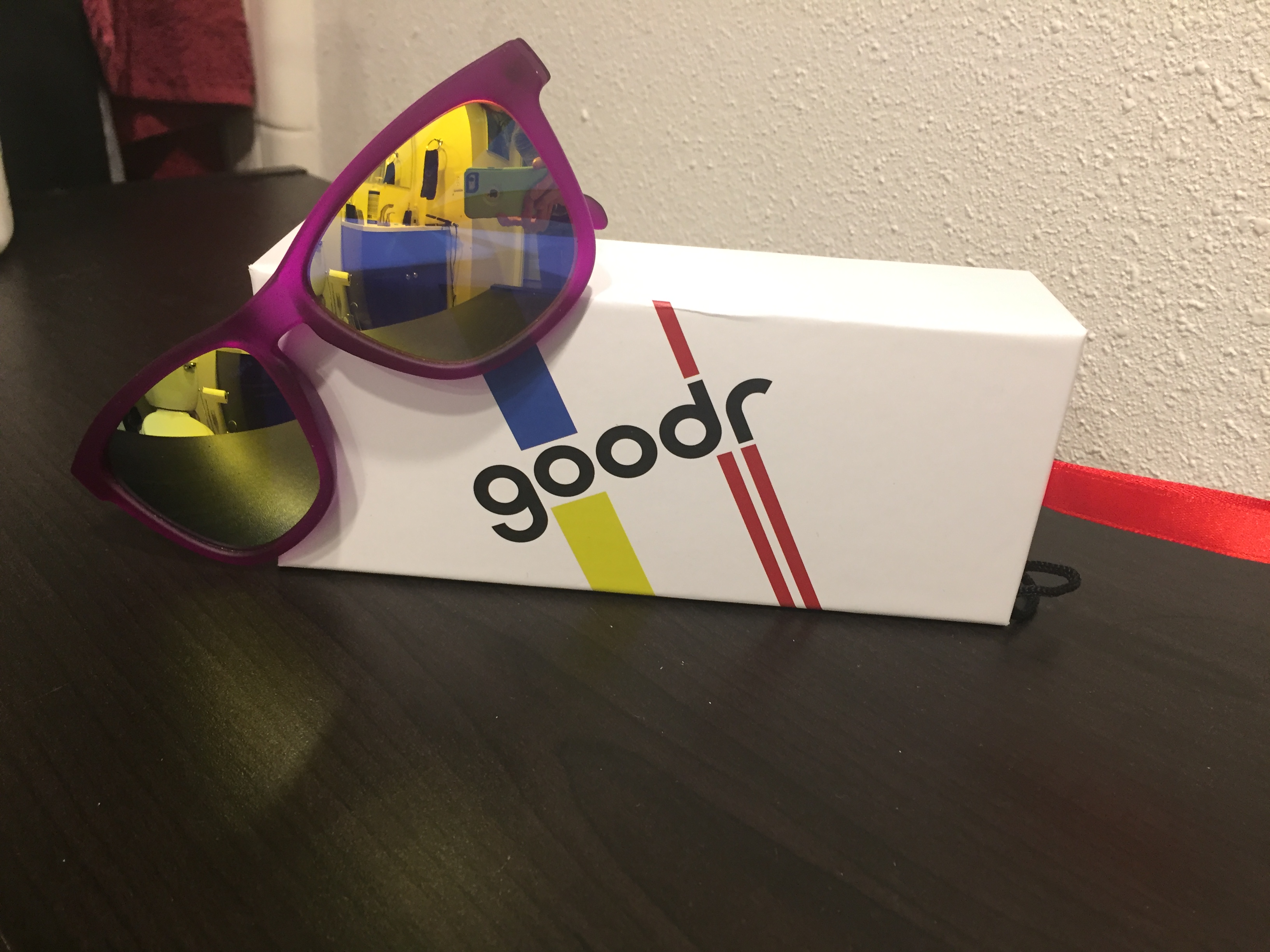 After Kim and I picked up our bibs and shirts we met up with Nicole and Becky. We took some time to walk around the expo. Kim and I both wanted to stop by the SPI Belt table to pick up separate pouch attachments to hold all of our fuel, chapstick and phone. From there we headed over to Fit2Run so Nicole could buy some nutrition and I wanted to say hi to my BRF Montana who was working the expo. Right next to her register they had the kiosk of the Goodr sunglasses, with my Fit2Run discount I just had to pick up a pair!!